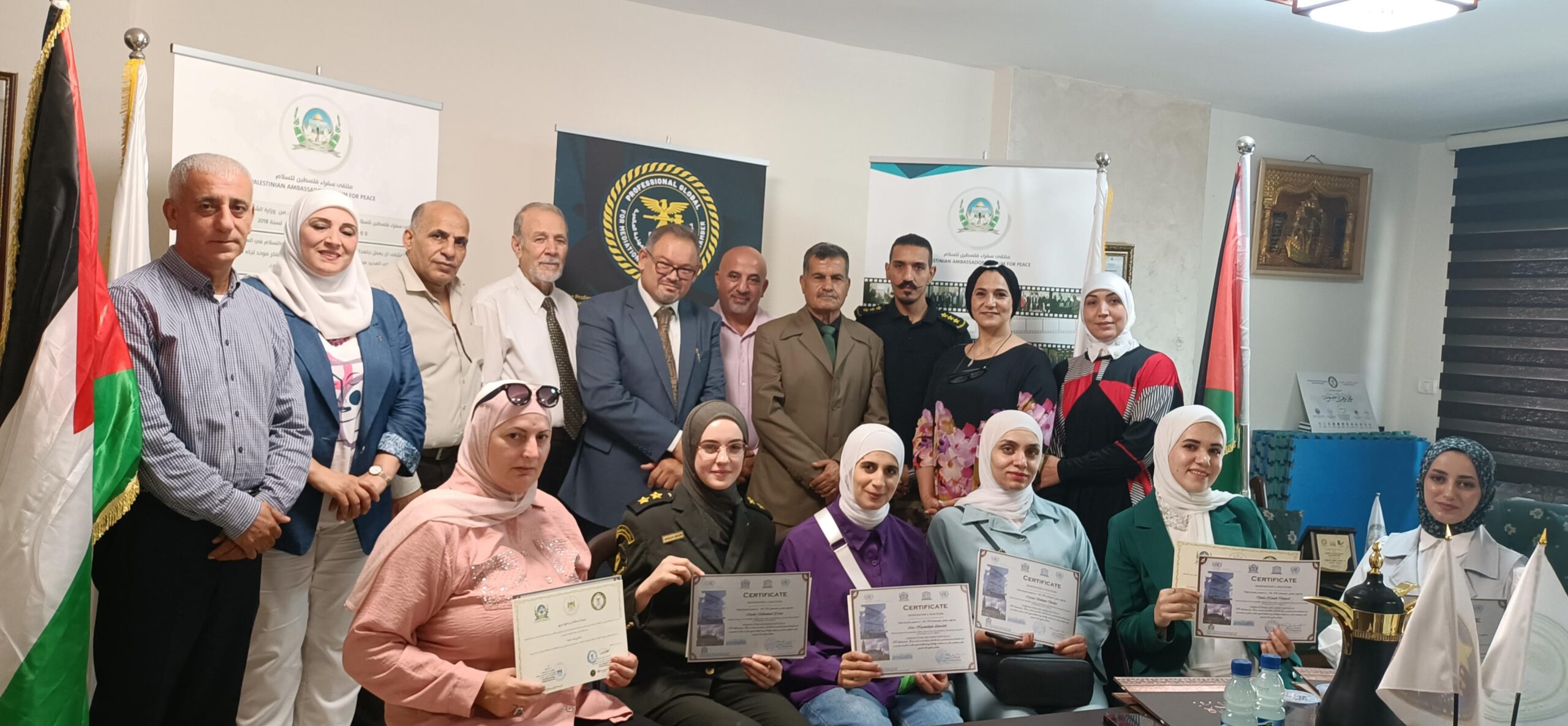 Dr. Mohammed Zahran Hassoneh, Commissioner General of Global Professionalism and Chairman of the Administrative Body of the Palestine Ambassadors Forum, emphasized the importance of this graduation, as it adds a new qualitative and international value to specialized courses. He affirmed the commitment to global quality standards in terms of academic staff, study plans, educational curricula, and teaching methods in the field of accreditation in Palestine.