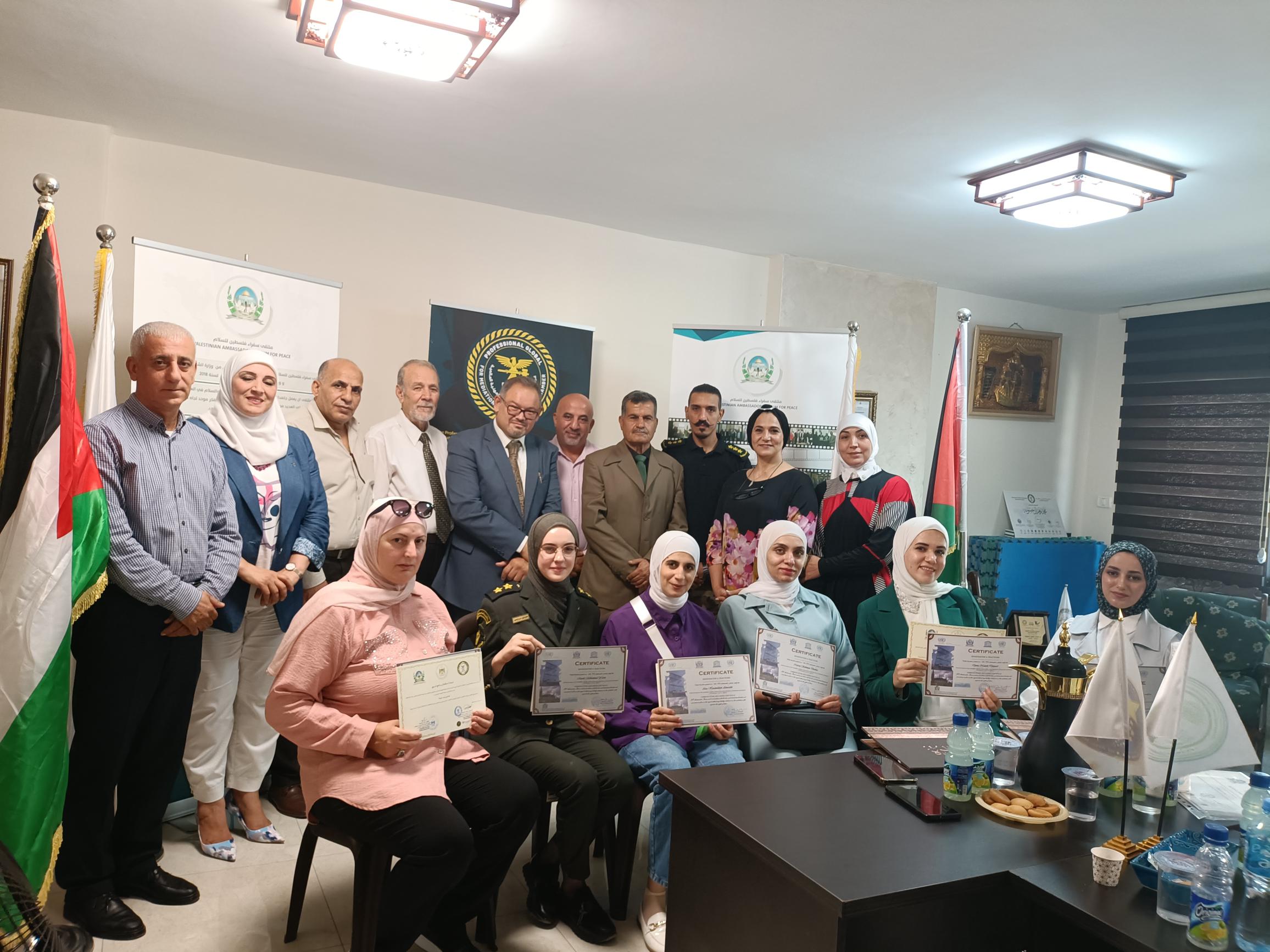 Under the patronage of the Honorable Governor of Nablus Governorate, the Political Guidance and Global Professionalism for Educational Projects, in collaboration with the Palestine Ambassadors Forum, organized the graduation ceremony for the training course in effective communication skills for officers and affiliates of the Political Guidance in Nablus.