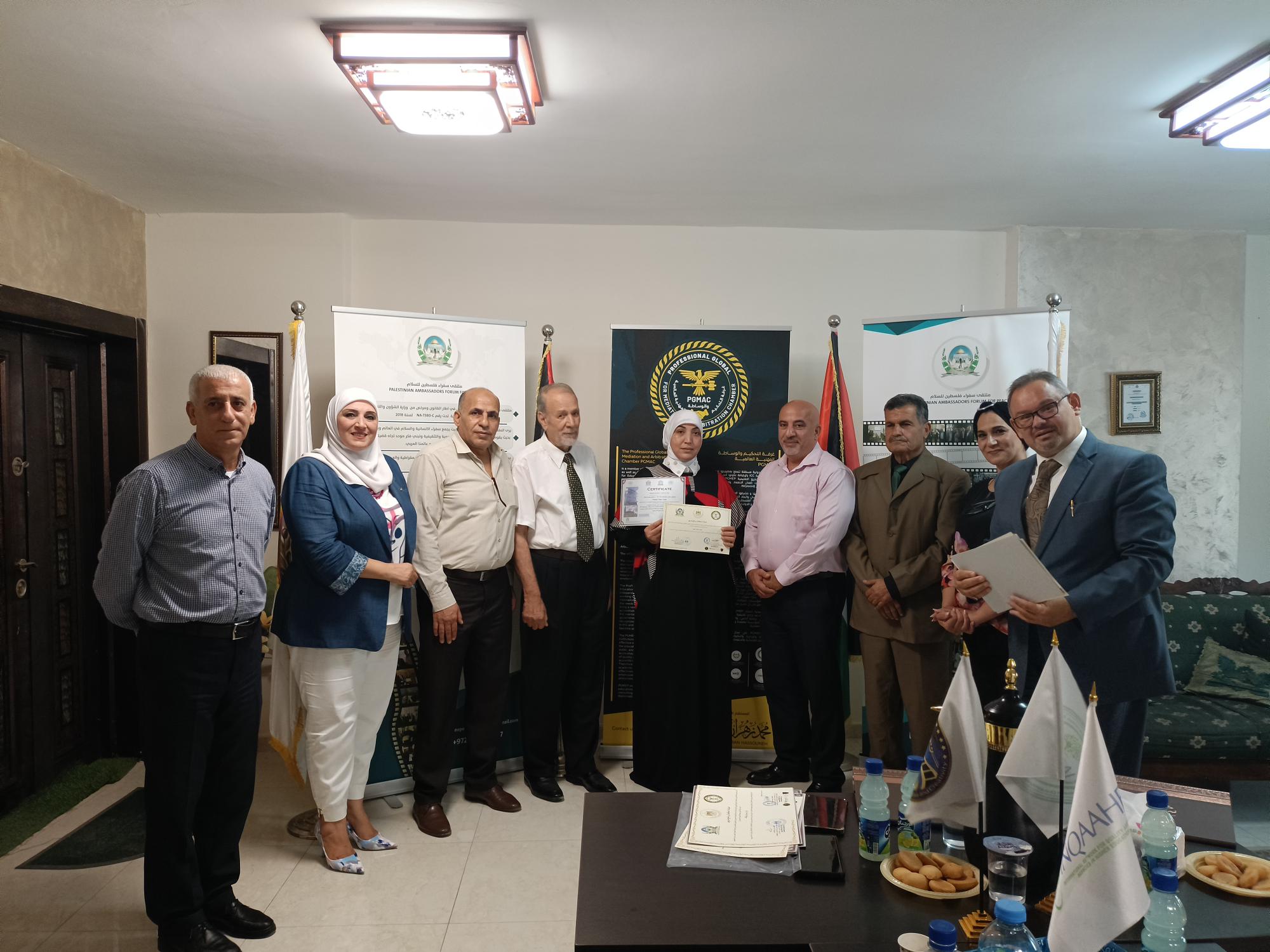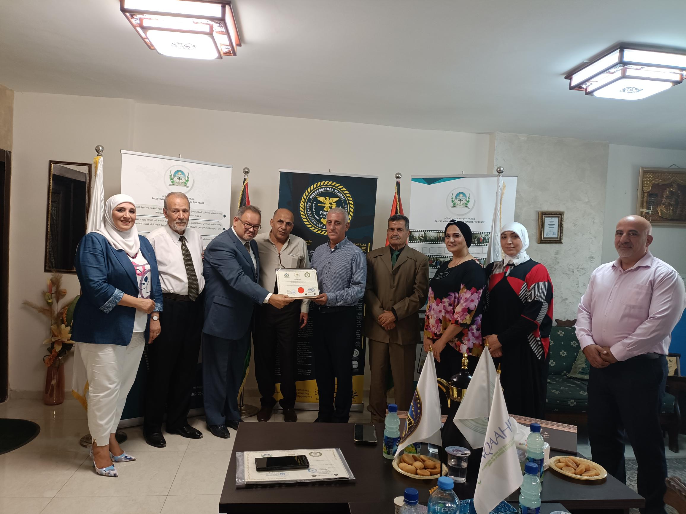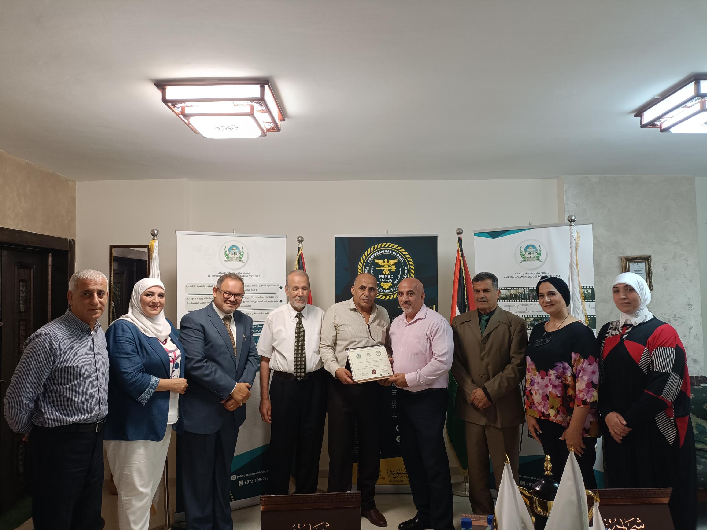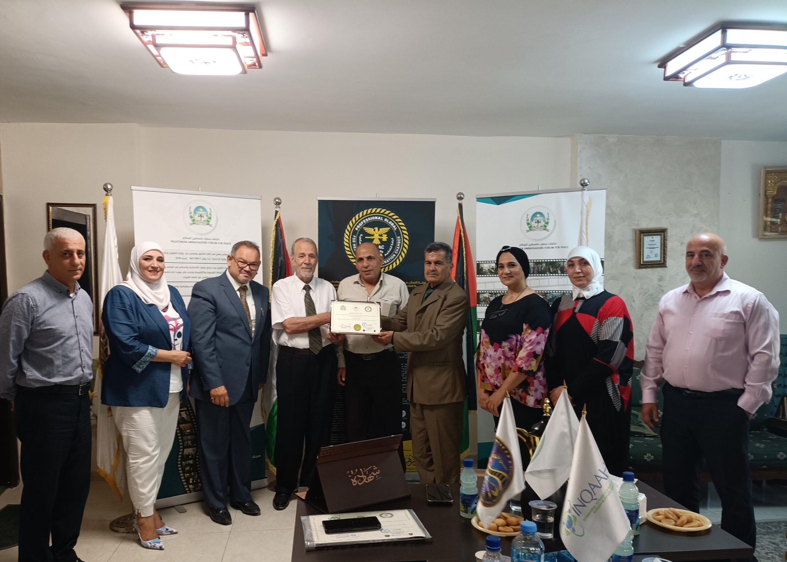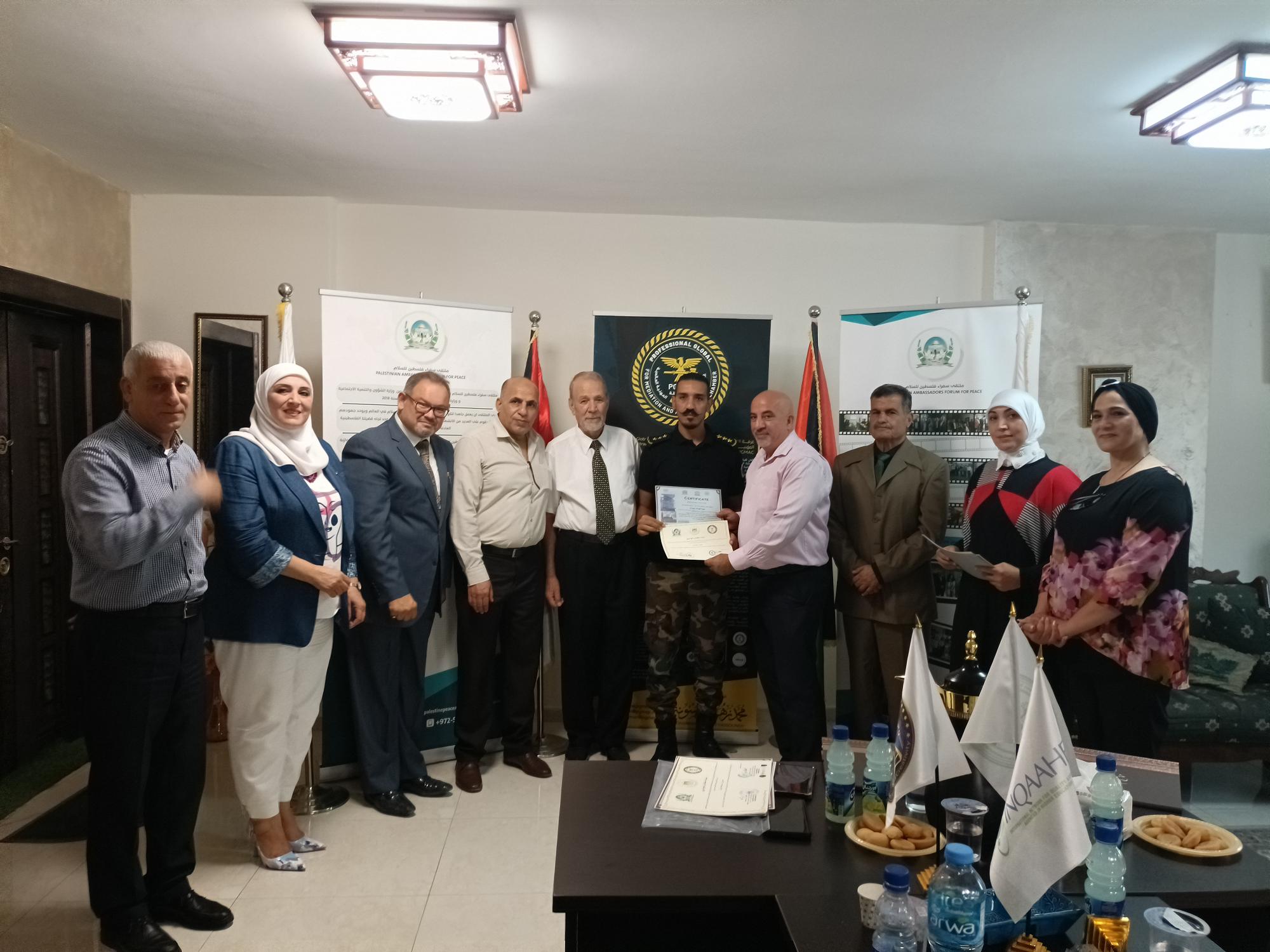 The Palestine Ambassadors Forum is a legal entity registered with the Ministry of Interior and the Ministry of Social Development. It operates in the humanitarian field and has many activities inside and outside the homeland in cooperation with popular diplomatic bodies in friendly countries. Meanwhile, the Global Professionalism for Educational Projects is an independent body comprising several specialized accreditation bodies that work in various fields of professional training. It operates according to internationally recognized professional training standards to meet the needs of many (trainees and institutions) around the world. Its role includes examining, reviewing, and organizing the validity of training operations, verifying the scientific content of the material to meet the program’s needs, and keeping pace with the latest scientific and technical developments in its fields of specialization. The group’s bodies also certify professional trainers with outstanding academic qualifications and sufficient experience in their training fields. Additionally, it is a member of the International Network for Quality Assurance Agencies in Higher Education (INQAAHE).